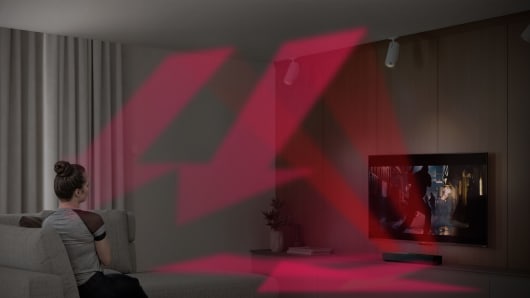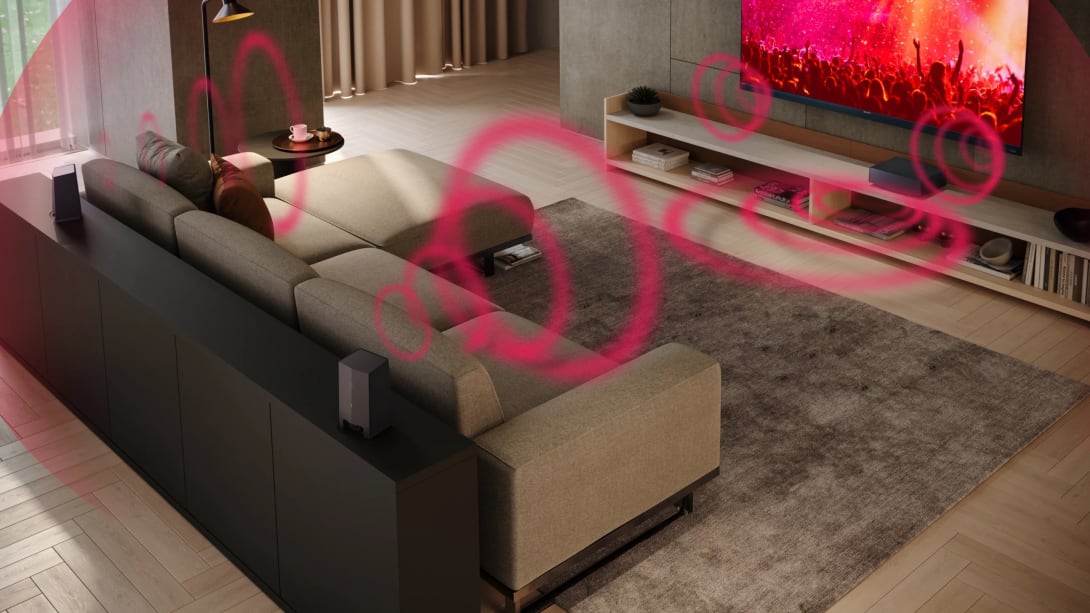 Les enceintes surround sans fil AQUOS fonctionnent avec votre téléviseur SHARP compatible, pour une expérience audio immersive Dolby Atmos® encore plus intense.