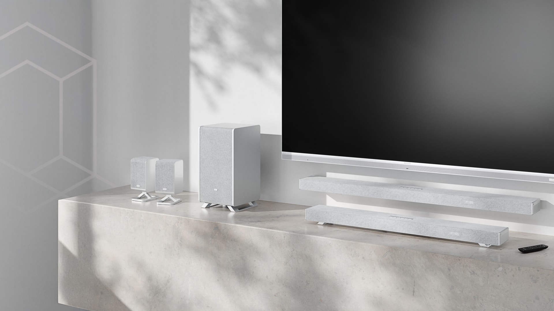 Les enceintes surround sans fil AQUOS fonctionnent avec votre téléviseur SHARP compatible, pour une expérience audio Dolby Atmos® immersive améliorée.